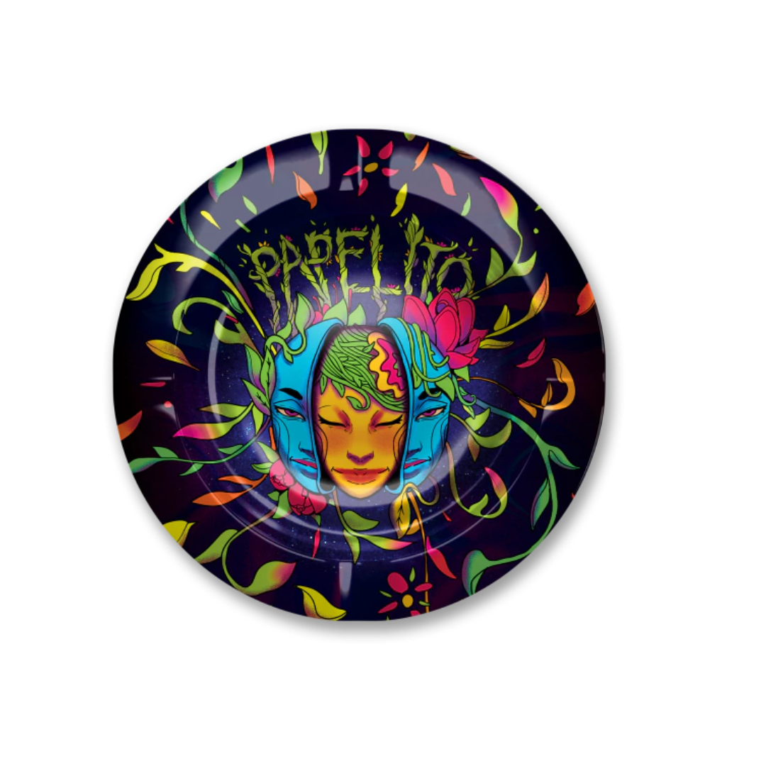 Um cinzeiro de metal de alumínio premium, com forma circular e capacidade para acomodações de três cigarros enrolados. É leve, resistente à oxidação e simples de higienizar.